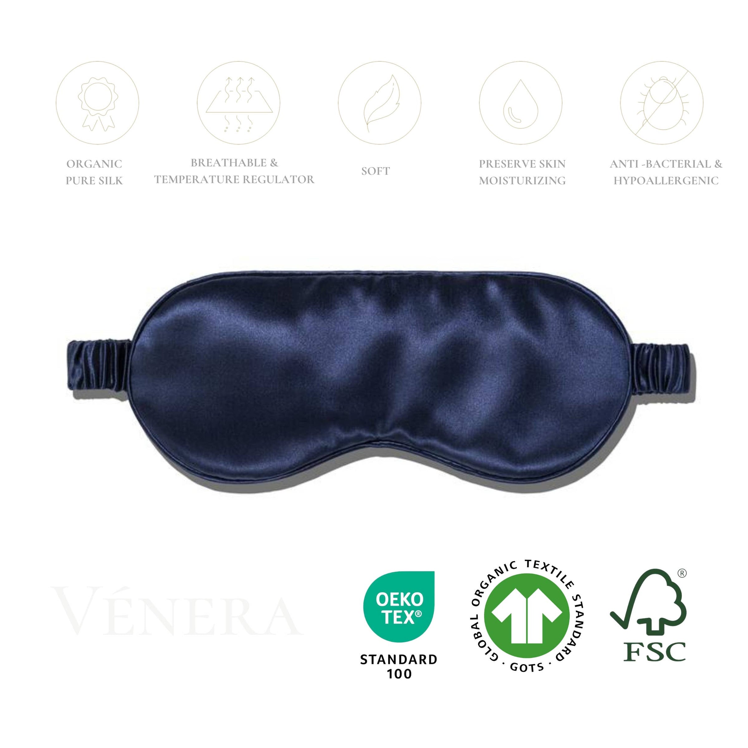 100% Organic Pure Silk Eye Mask - Navy Blue